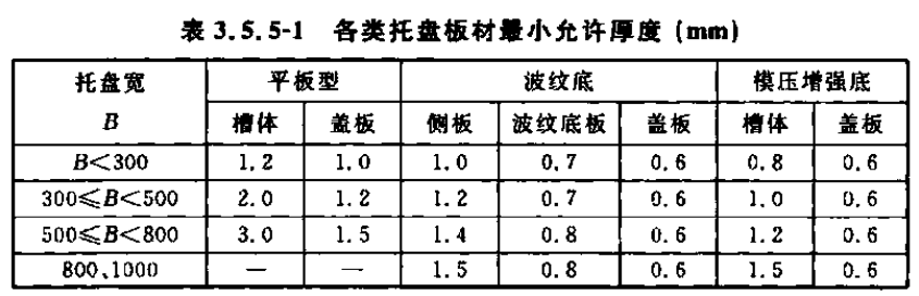 各类托盘桥架的厚度标准可参考中国工程建设协会标准《T/CECS 31-2017钢制电缆桥架工程技术规程》表3.5.5-1